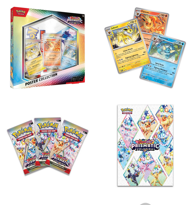 The Pokémon TCG: Scarlet & Violet—Prismatic Evolutions Poster Collection includes: