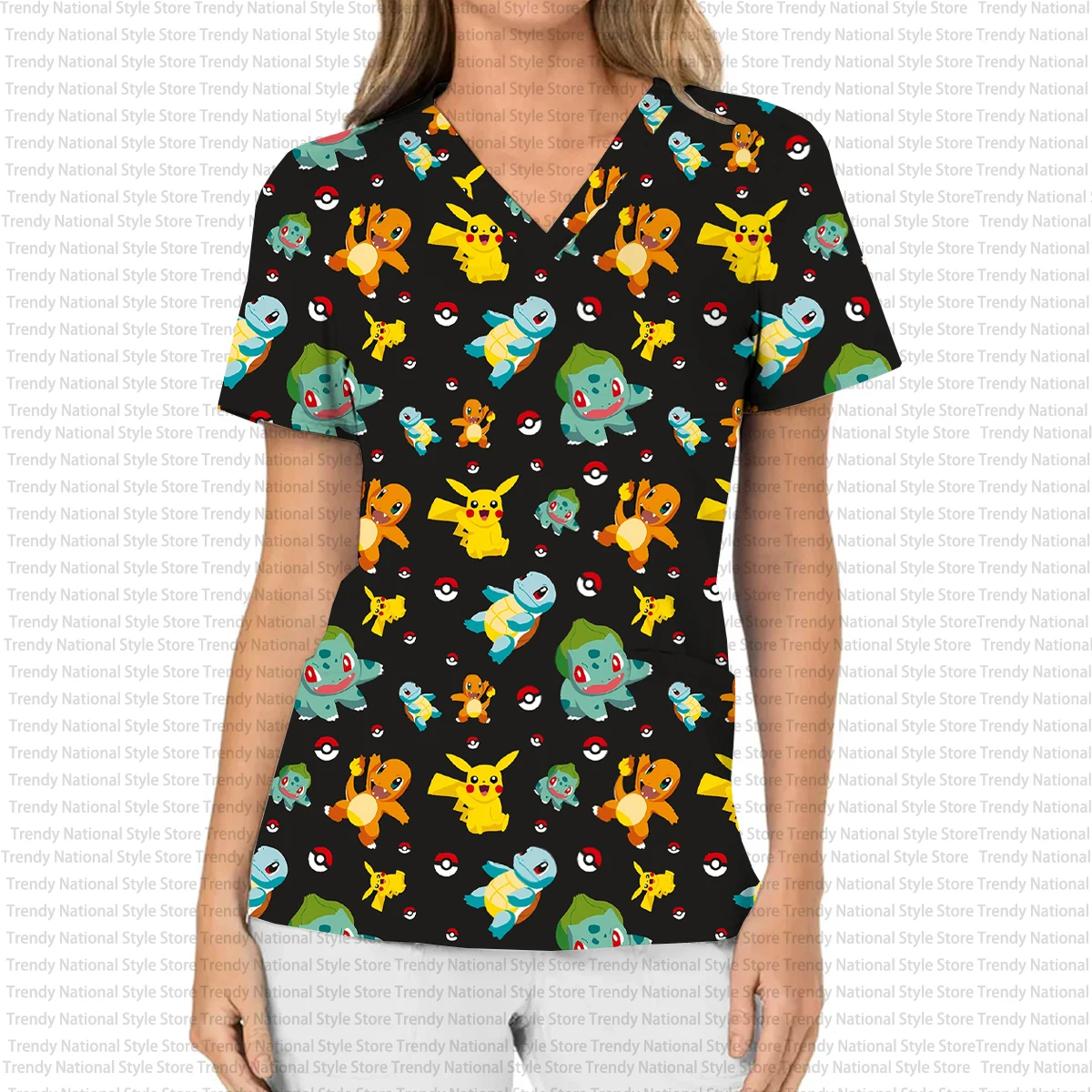 *Sale Kanto Starters V-Neck Short Sleeve Pocket Scrub Top – Featuring (Charmander, Squirtle & Bulbasaur)